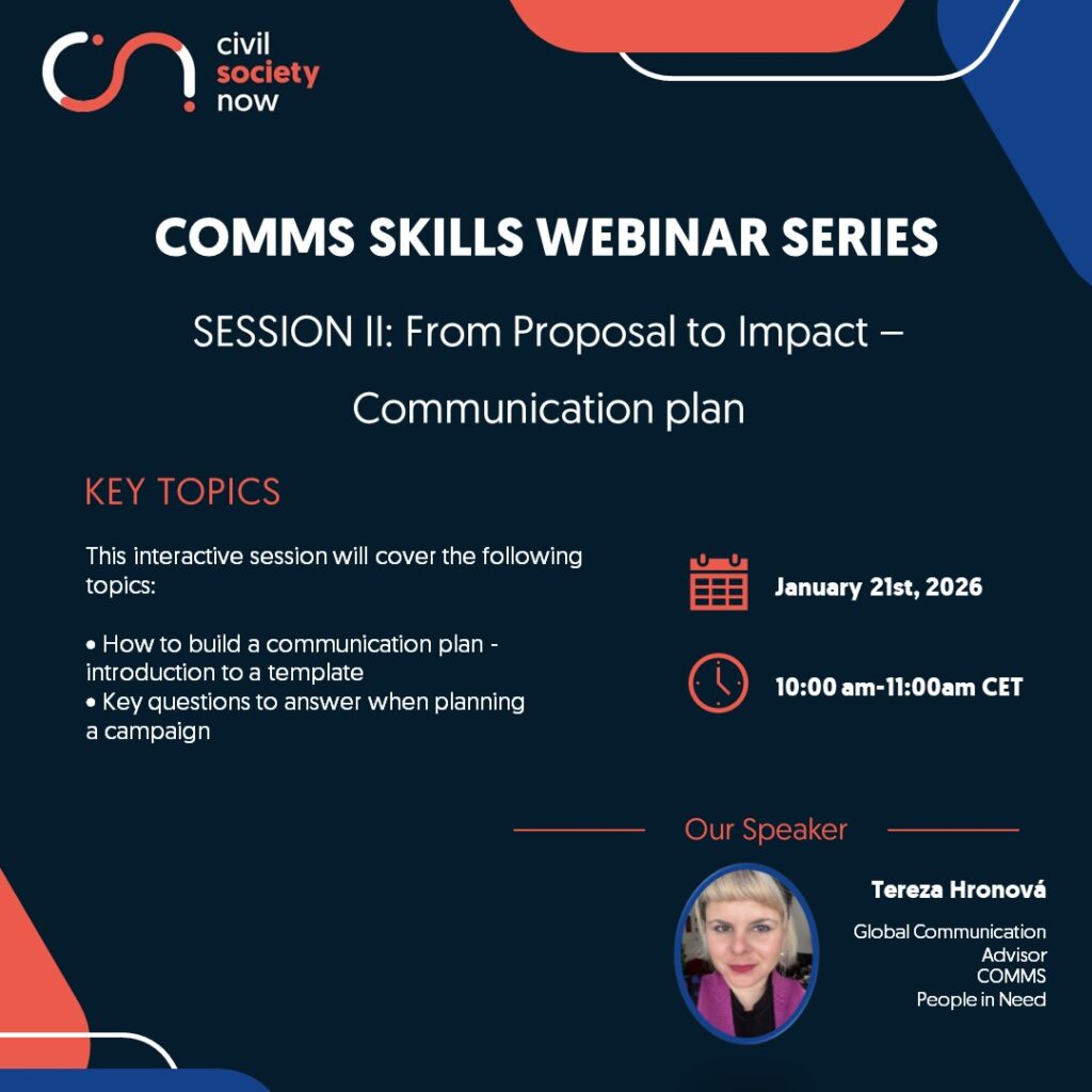 A session benefits the local CSOs’ programme and MEAL staff engaged in programme planning, proposal development, or donor reporting.